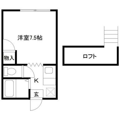 | 間取り | 1K(洋7.5 ロフト2) | 主要採光面 | 南 |